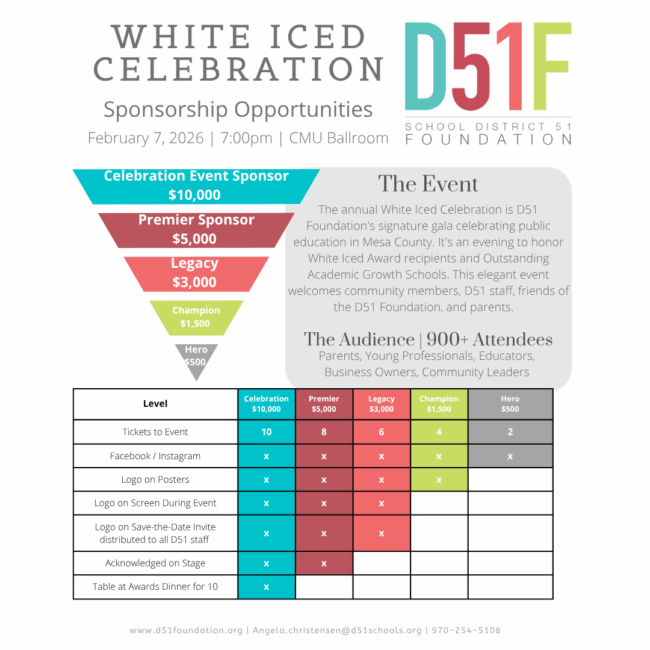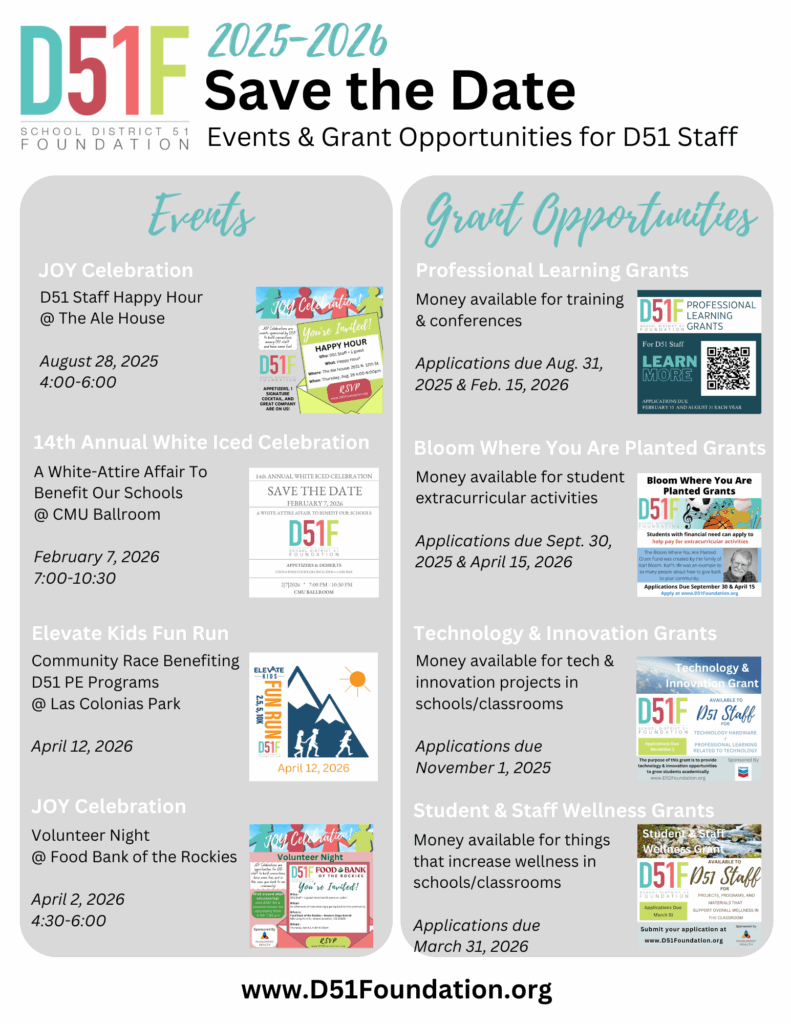 D51 serves over 20,000 students in the Grand Valley and there’s always a lot going on! D51F hosts several events throughout the year to engage the whole community in support of teaching and learning in D51.